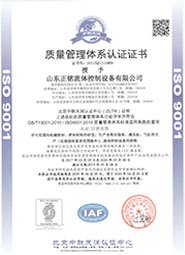 公司自成立以來,積極強化內部管理,逐步建立并完善質量管理體系和嚴格的質量保證程序,取得了國家質檢總局頒發的機械密封生產許可證、壓力管道元件特種設備制造許可證。先后通過了ISO14001環境管理體系認證、OHSAS 18001職業健康安全管理體系認證、ISO9001質量管理體系認證。